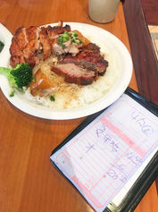 . . . then we found HK BBQ Master, and our world changed! This is a busy spot with people lined up out the door during peak hours (for reasons that would become obvious) with droves of people wanting on either takeout or a table. It's meant to be a quick turn-over, made obvious by the cheque showing up only a few bites into our dish. (though to be clear we never felt rushed) The menu is simple, offering three kinds of meat: pork; chicken; and, duck. We ordered the pork and chicken, but clearly the waitress felt we were making a mistake and brought us a plate with all three. The meats were outrageously tender and juicy; the chicken, in particular, blew our minds. (and our palates!) We made an excellent decision in choosing to share one plate between the two of us; the meats are fatty and rich, with generous portions and loads of rice; had we ordered a plate each we would have had to be carted from the place in a wheelbarrow!